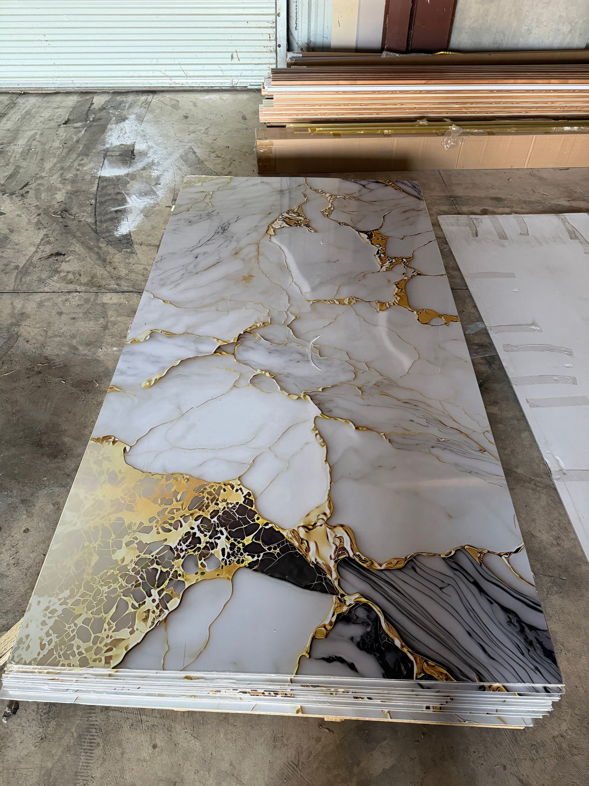 Marble PVC Wall Panels – Elegant & DurableTransform your living or commercial space with our premium PVC Marble Wall Panels. These Calacatta White Marble PVC Wall Panels offer an elegant and durable solution for indoor wall decoration. Designed to be waterproof and fireproof, they are perfect for home, office, bathroom, and restaurant interiors.